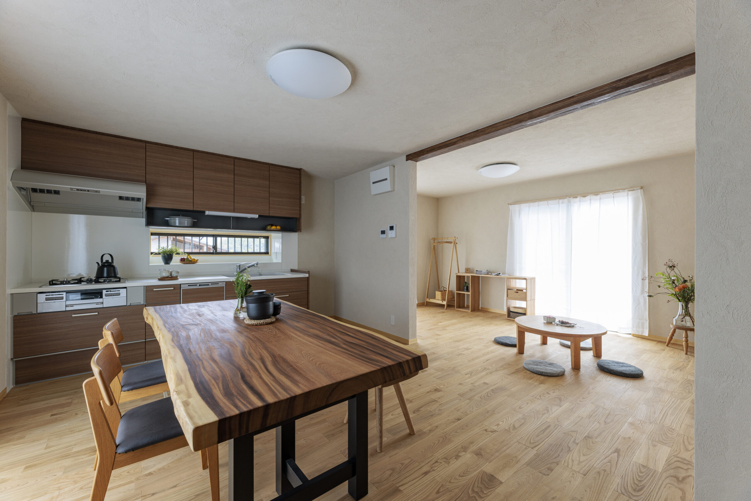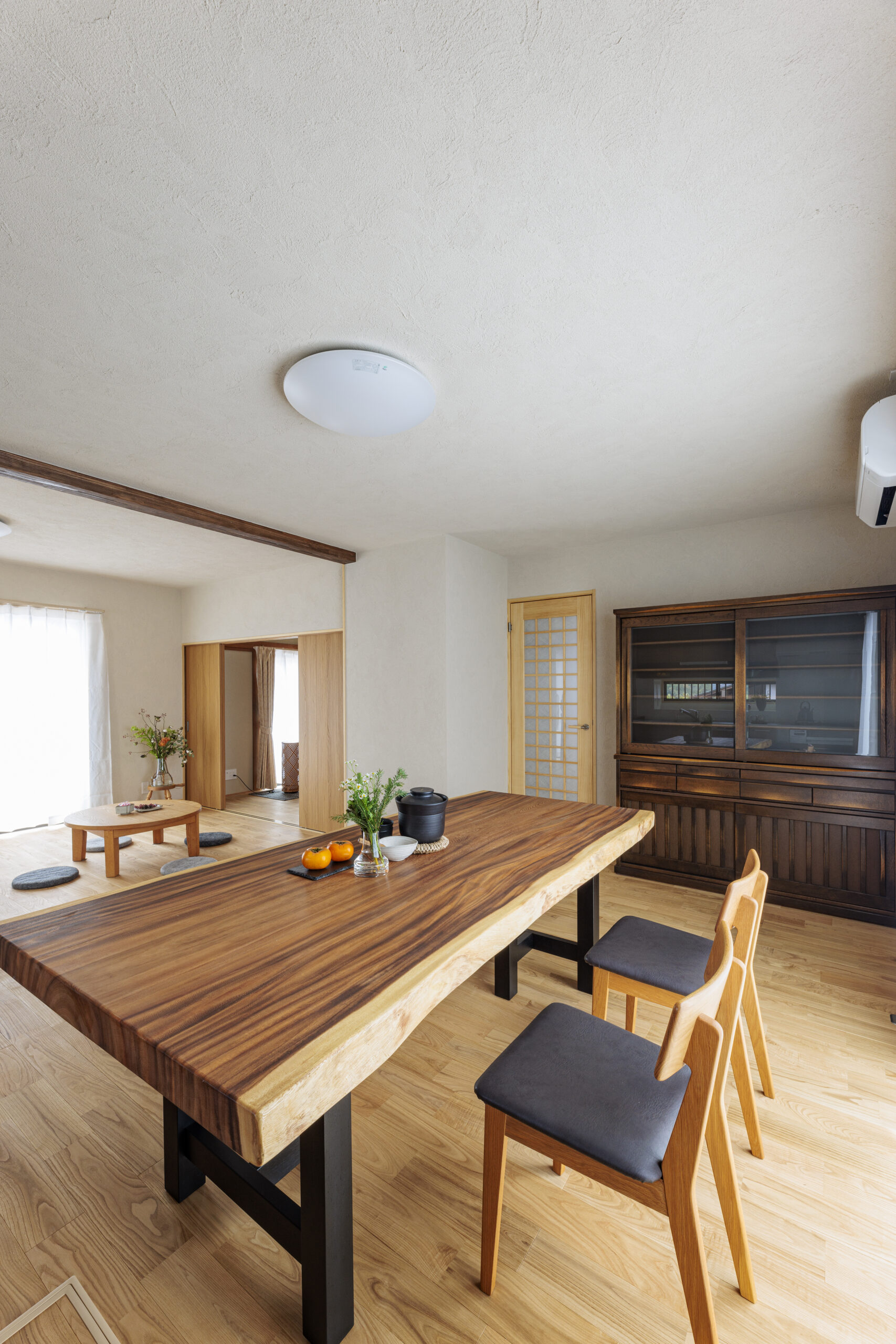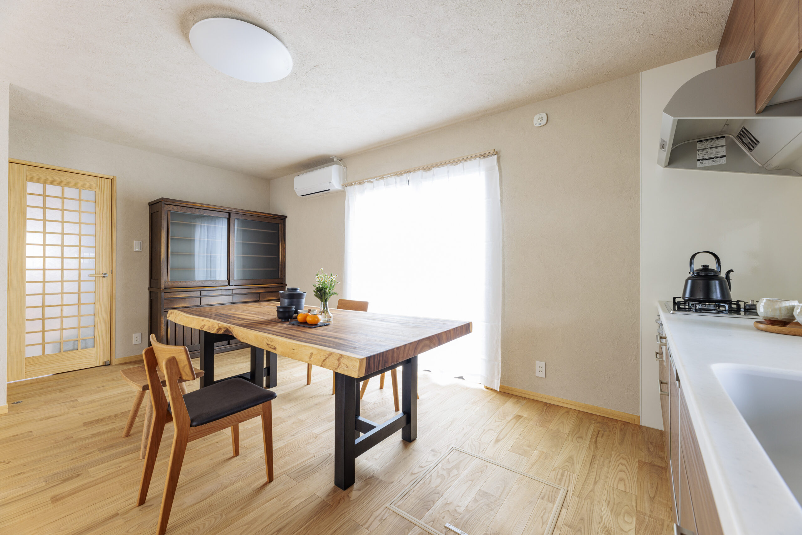 1階は全て断熱サッシに取替え、床、天井にしっかりと断熱材を施工し、年中過ごしやすい住環境を整えました。また、昼間でも暗かったダイニングキッチンは南側の部屋とひと続きにして、明るく広いLDKとなりました。家族がのびのびと寛げる場所が今回のリフォームで生まれました。