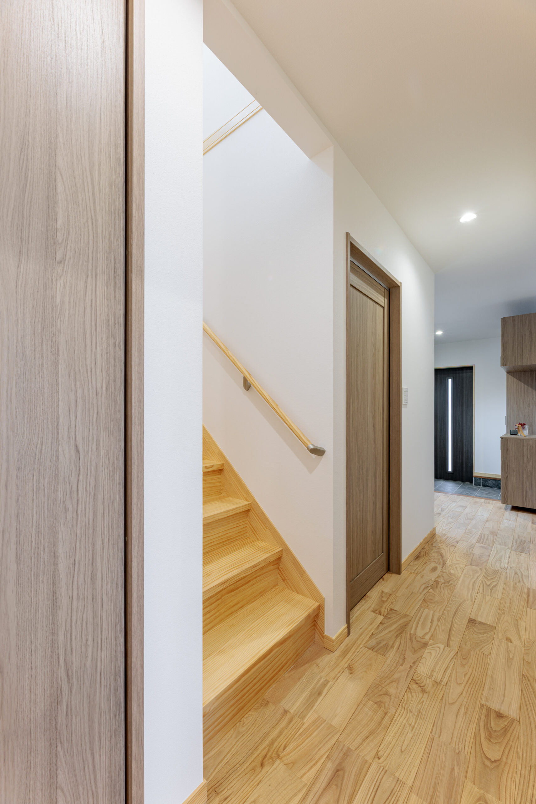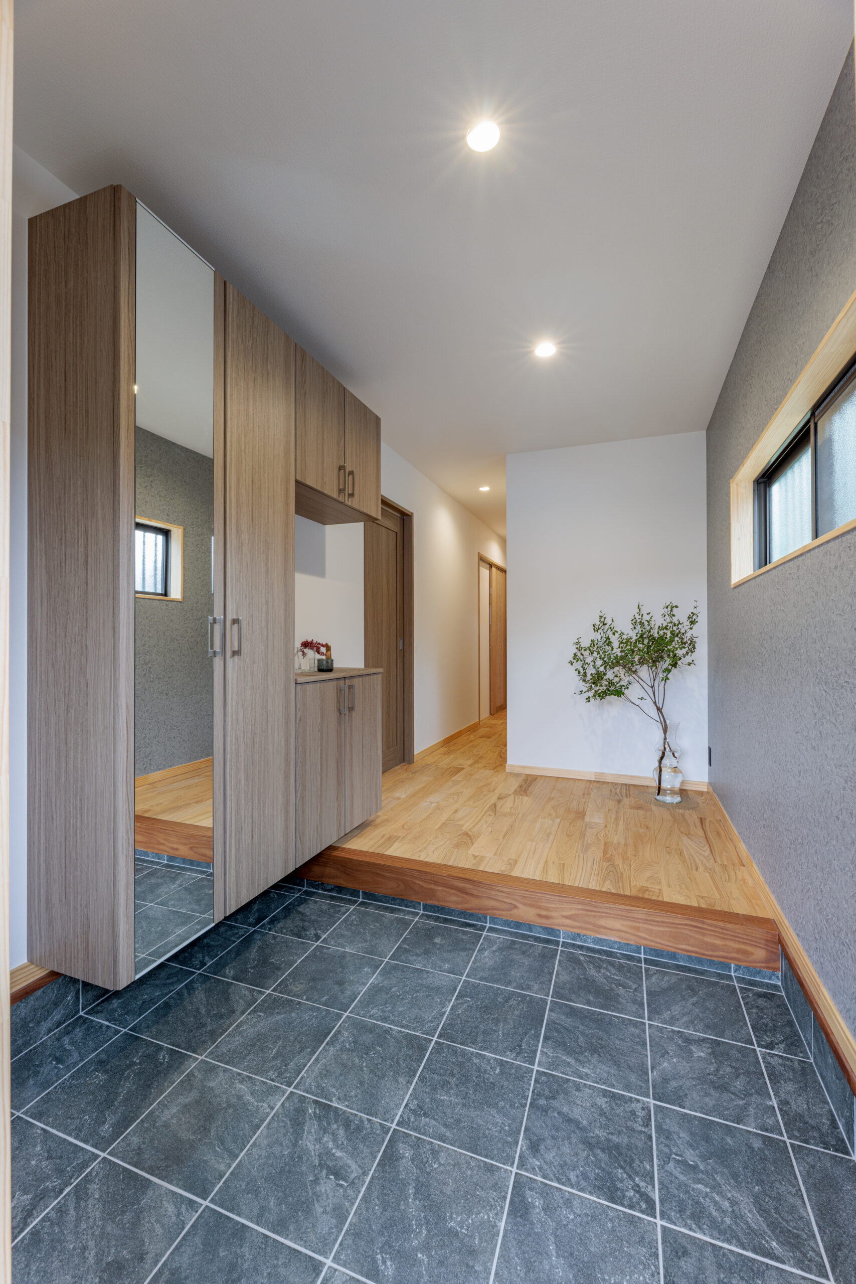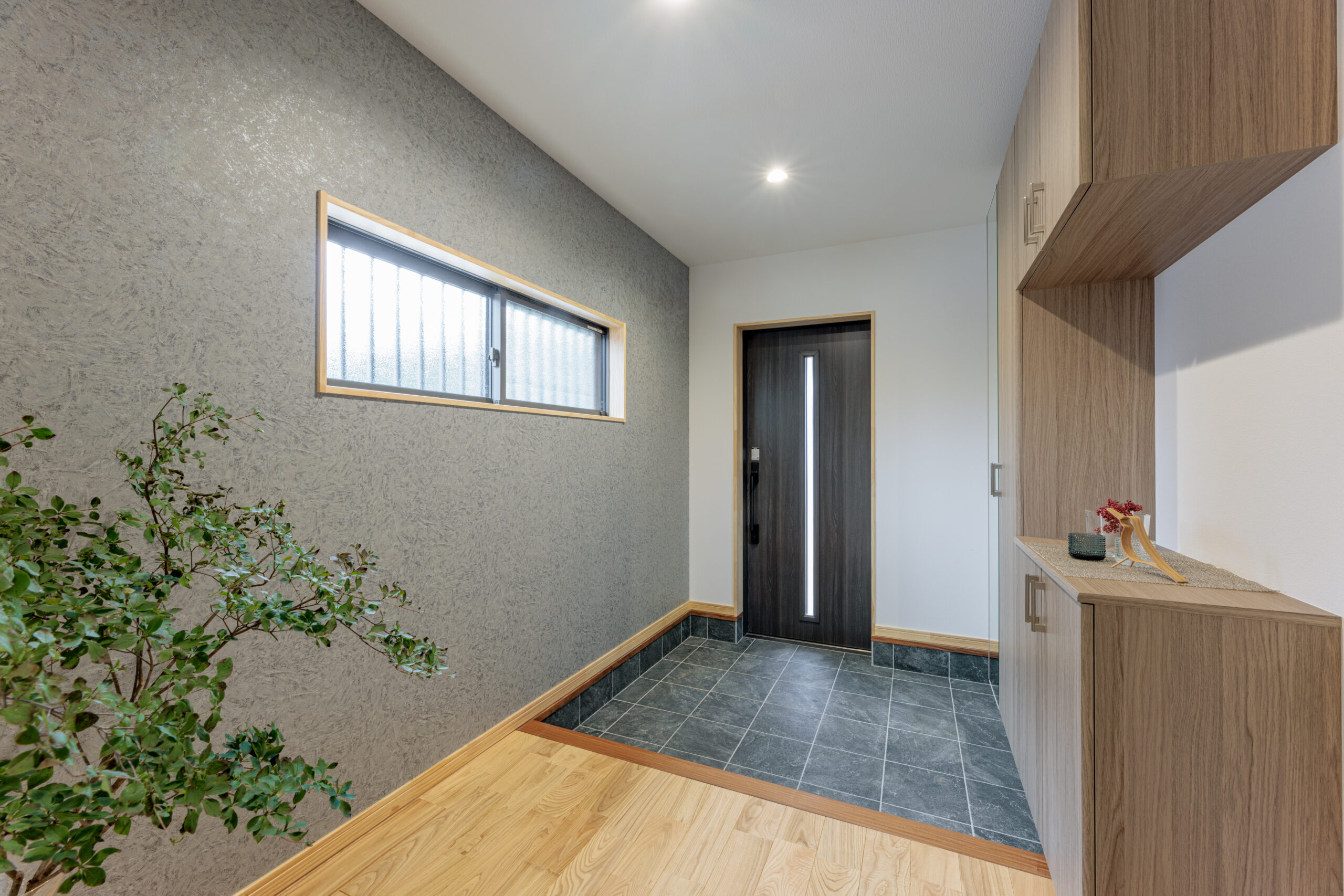 大容量の玄関収納や大きなウォークインクローゼットなど、収納を充実させてすっきりと暮らせる工夫をしています。