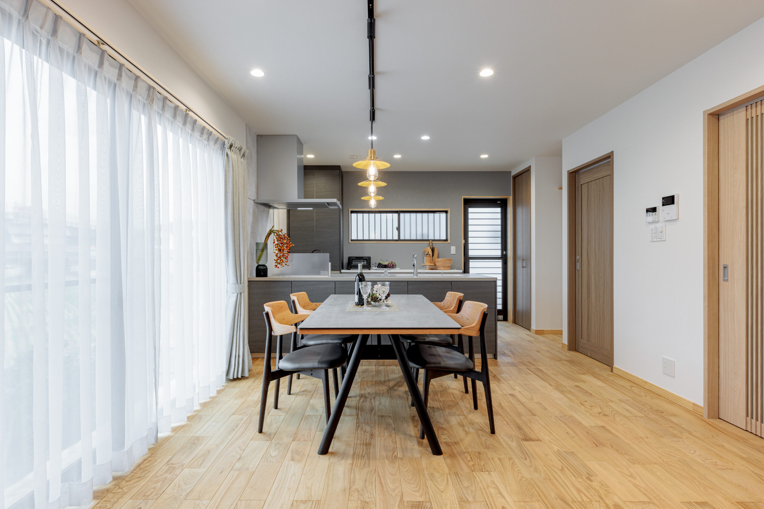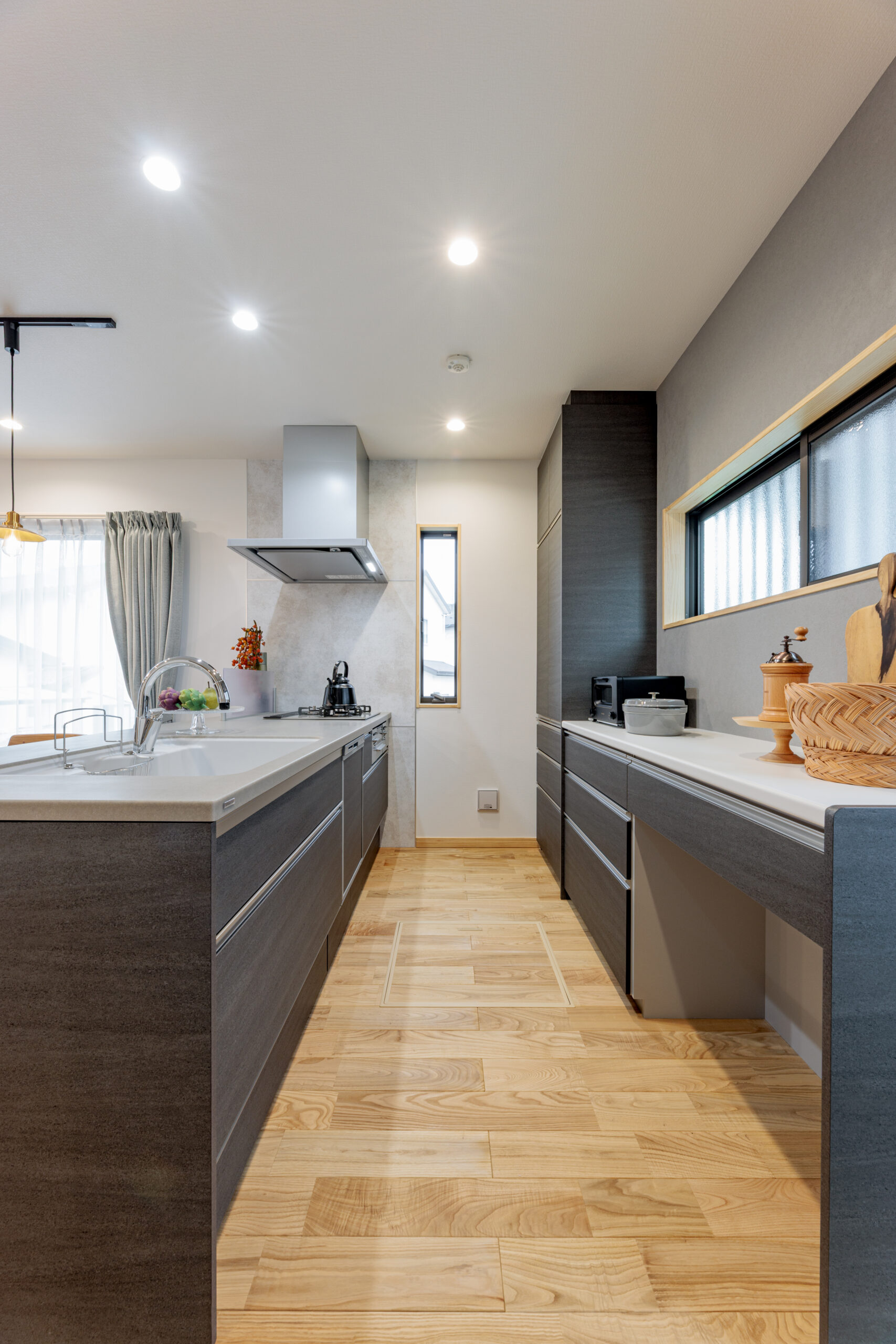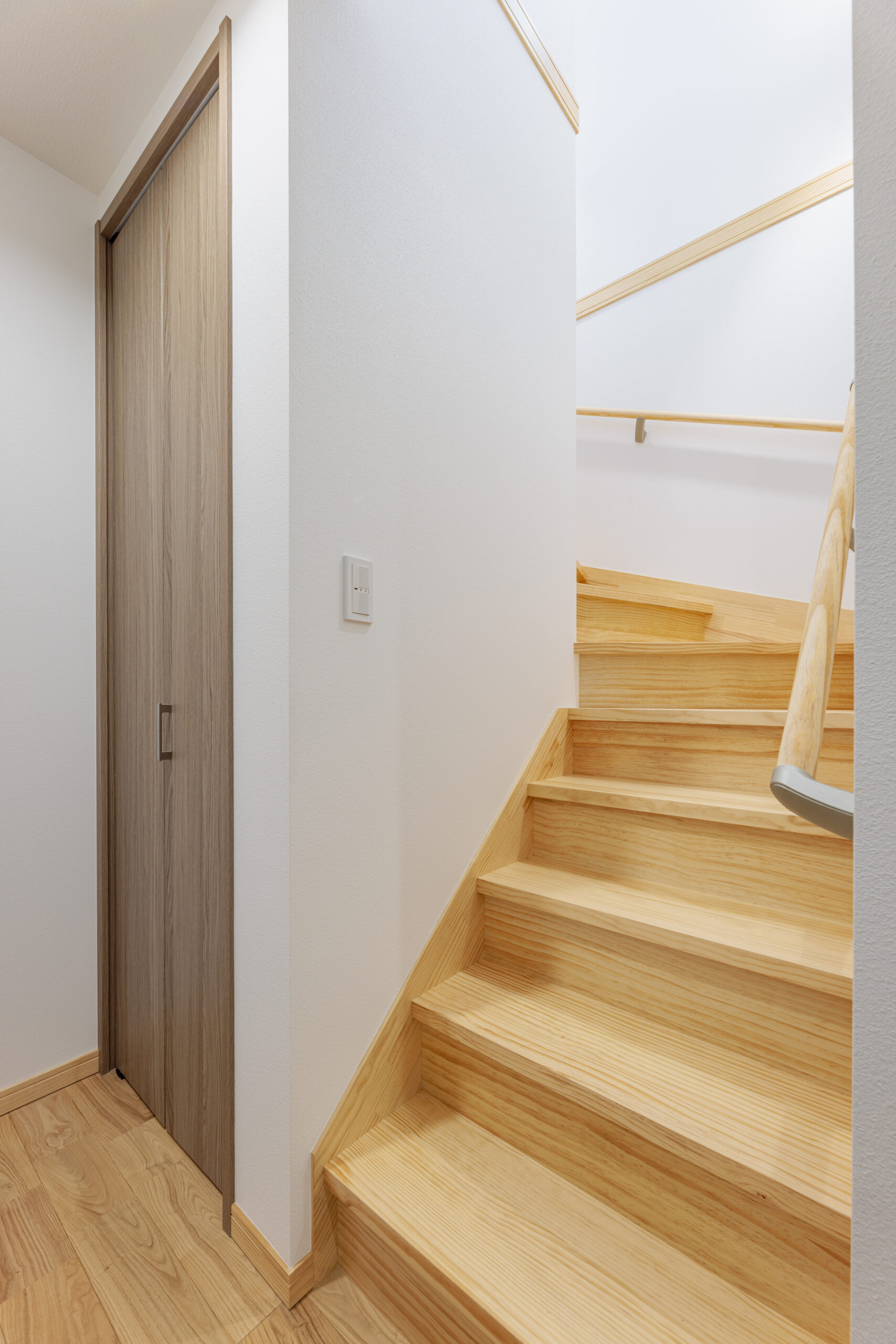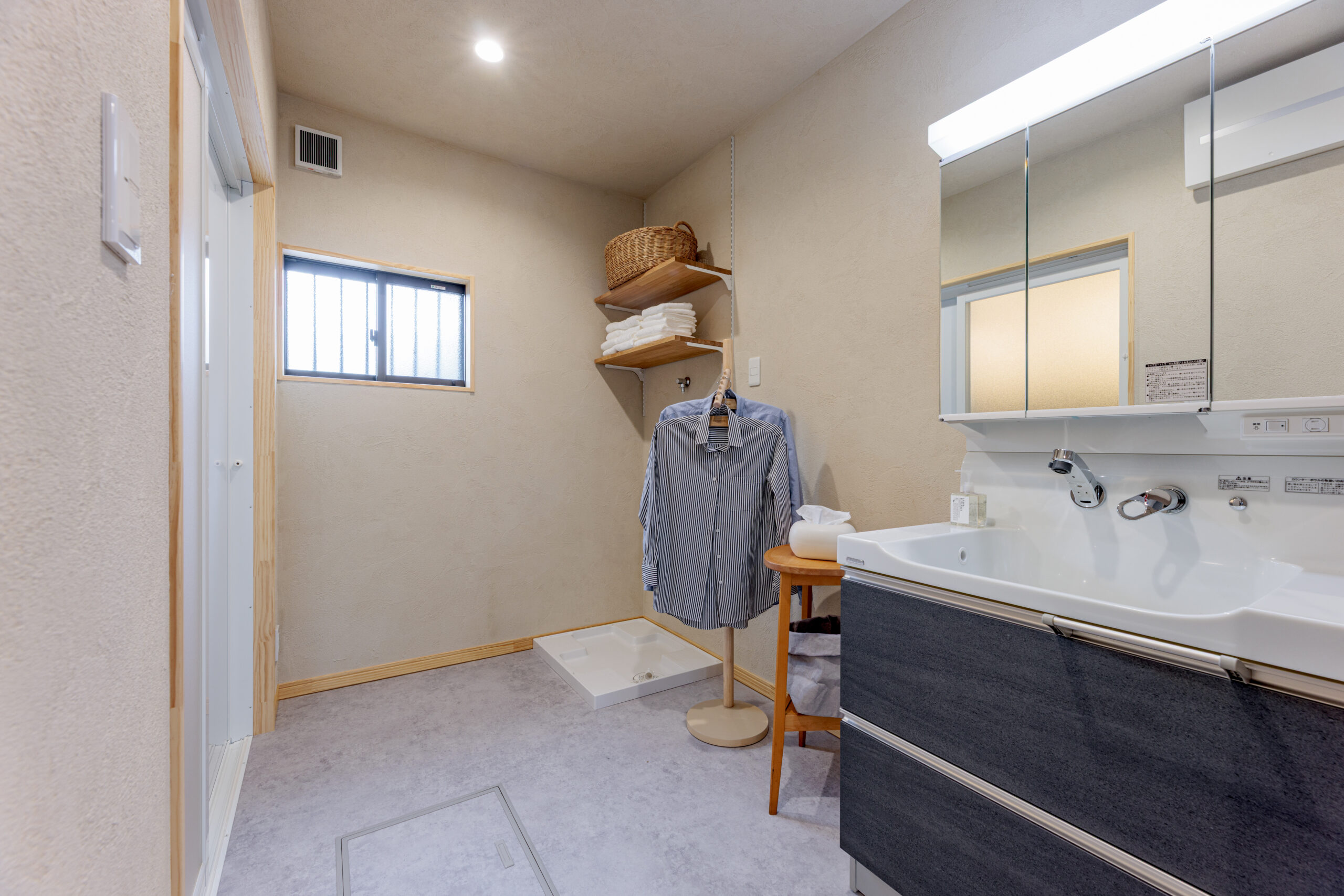 大容量の玄関収納や大きなウォークインクローゼットなど、収納を充実させてすっきりと暮らせる工夫をしています。